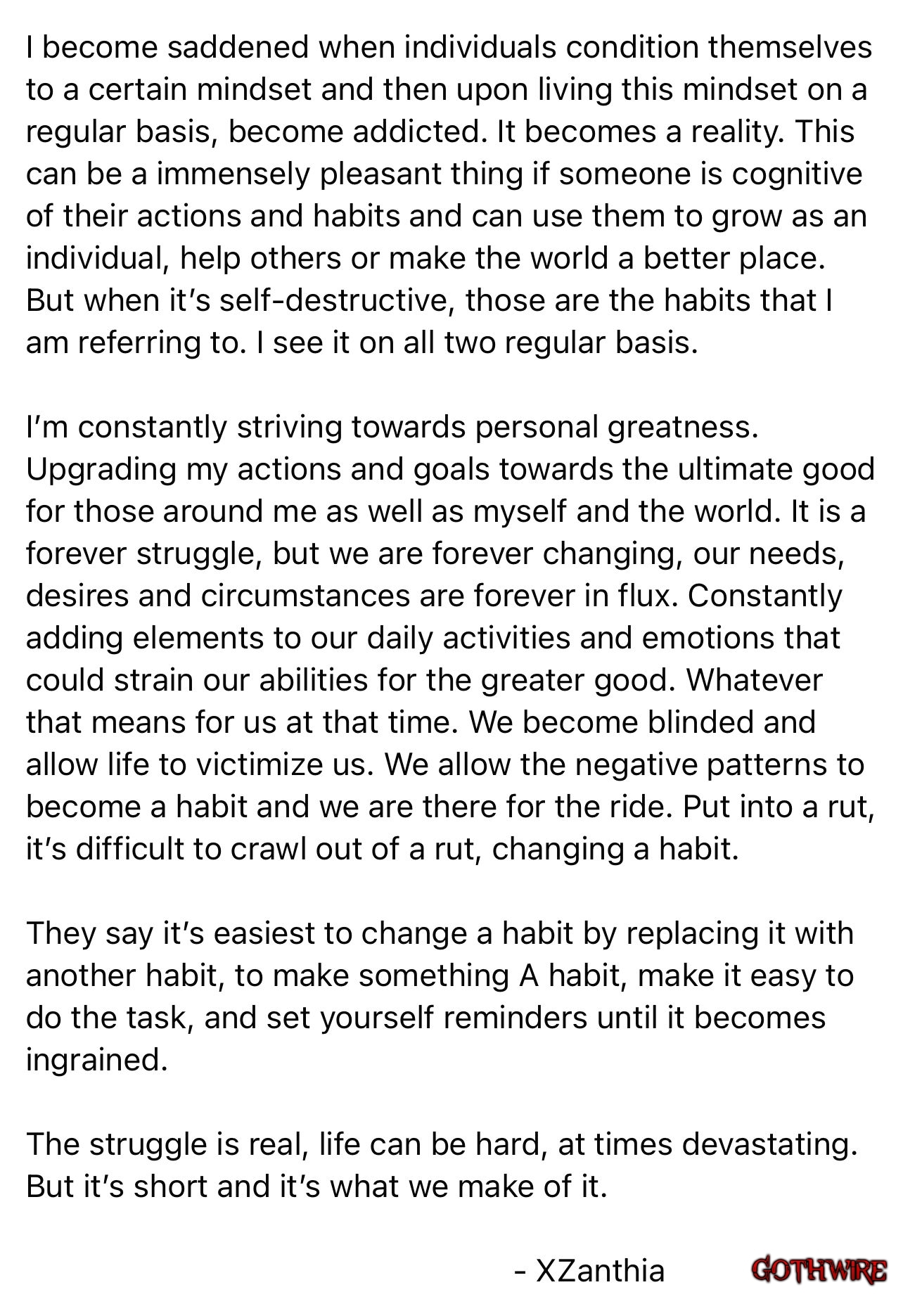 "The struggle is real, life can be hard, at times devastating. But it's short and it's what we make of it. "- XZanthia