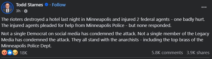 This terrorist attack could also be blamed on President Trump himself, for not sending in any military personnel or some other sort of identical backup to protect ICE and Border Patrol law enforcement. His failure to act, is harming law enforcement.